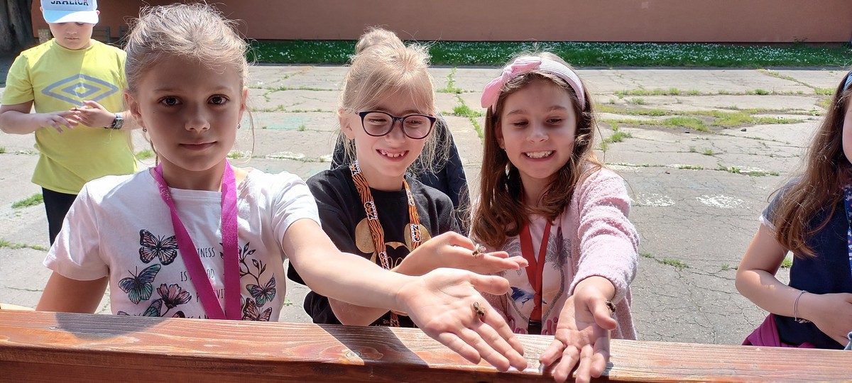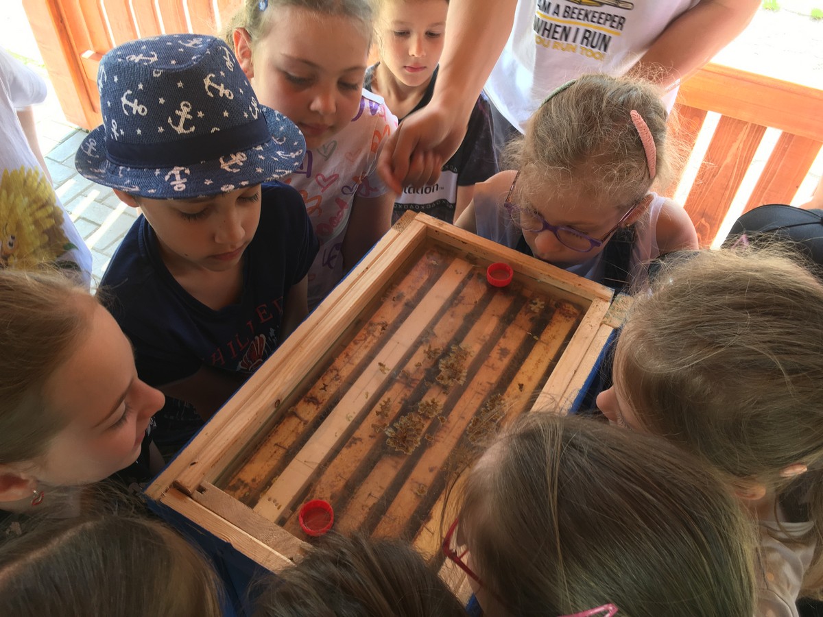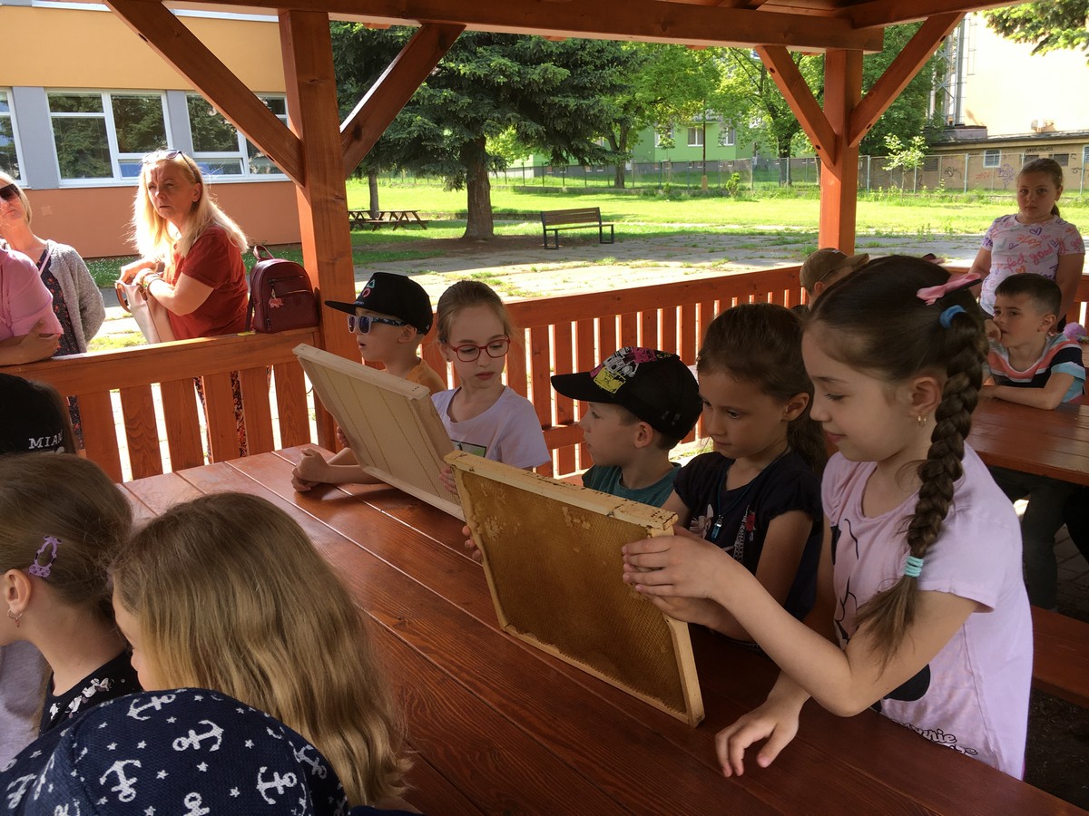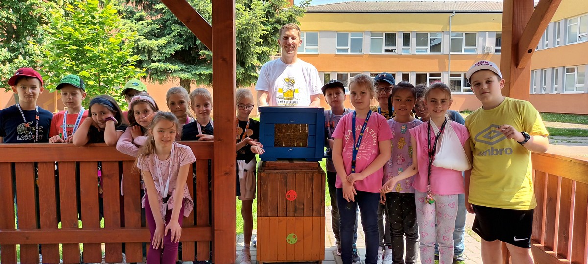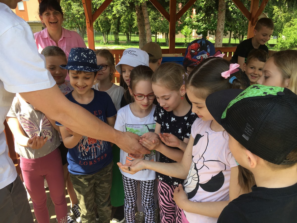 V utorok, 23.5., bol krásny slnečný deň a medzi nás zavítal pán Martinusík, ktorý nám porozprával veľa zaujímavého o živote včelieho spoločenstva. Deti z 1.D a z 2.C sa aktívne zapájali do diskusie o včeličkách a tých odvážnejších pošteklil na dlani trúd.