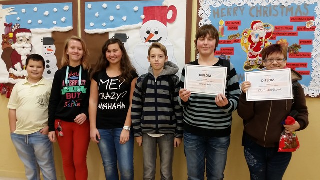 Dňa 10.12. 2015 sa uskutočnila olympiáda z anglického jazyka v dvoch kategóriách. V kategórii 1A sa zúčastnilo 19 žiakov a na 1. mieste sa umiestnila Pavlína Barbaričová (7. B), na 2. mieste Tomáš Horička (7. B) a na 3. mieste Erik Danihel (7.A). V kategórii 1B súťažilo 10 žiakov a výsledné poradie je nasledovné: 1. miesto Klára Janečková (8.A), 2. miesto Ondrej Skála (7. C) a 3. miesto Peter Illéš (9.A). BLAHOŽELÁME!!