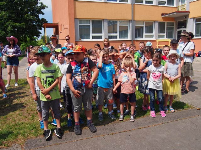 Dnešné slnečné popoludnie strávili deti zo školského klubu a deti z MŠ Dúha akčne a súťažne. K sviatku detí sme pre ne pripravili súťaže zamerané na "divoký západ". V disciplínach hod na cieľ, oštepom, lasom a na terč dokázali svoju rýchlosť a obratnosť. Splnili aj úlohu doviezť koníkom slamu, zajazdiť si na ňom, prejsť prekážkovú dráhu a nakoniec si zatancovať v "Saloone". Country hudba a kovbojské oblečenie dopĺňali atmosféru divokého západu.