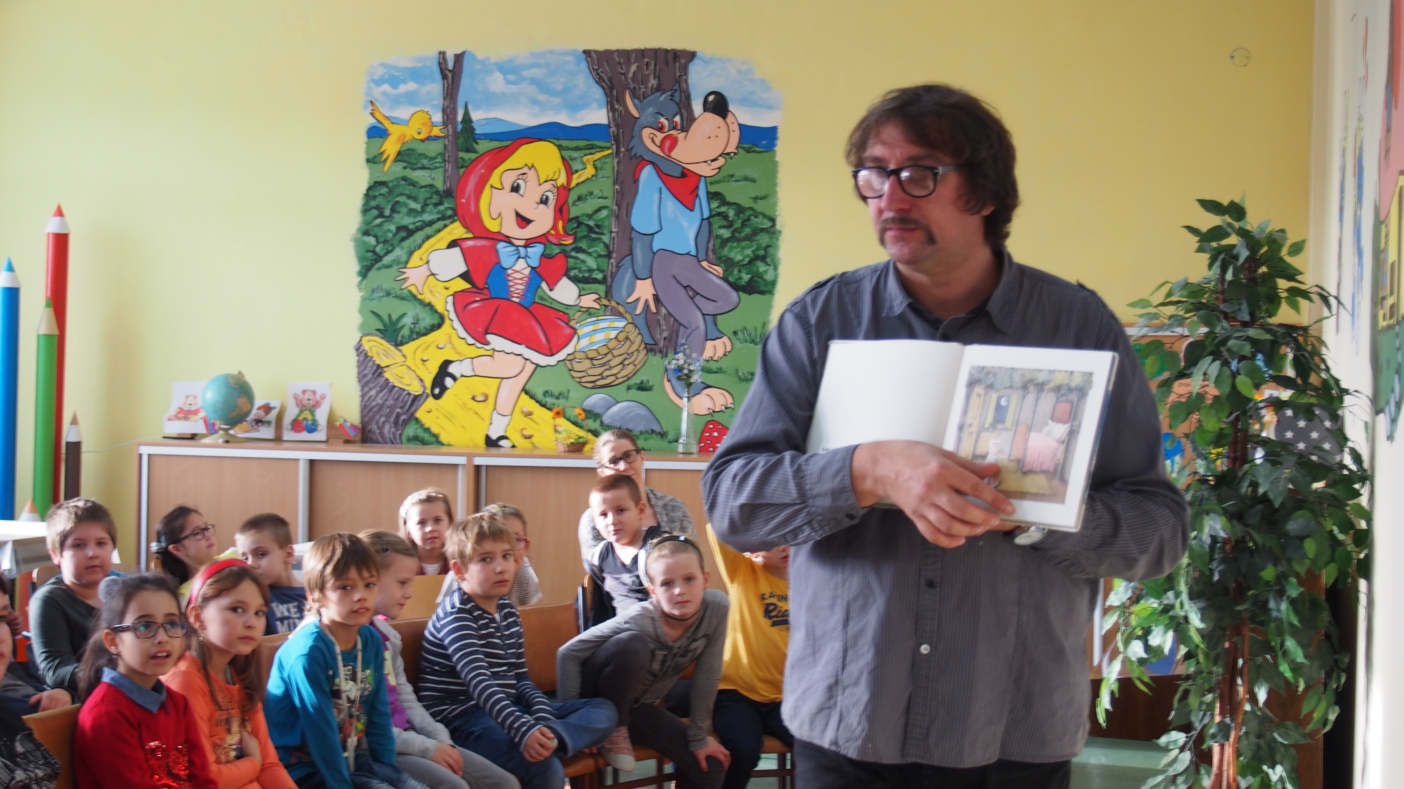 V dňoch 13. - 14.novembra sa žiaci 1.stupňa preniesli do rozprávok v podaní pána Mrkvičku, ktorý k nám zavítal do školy. Svojim dramatizovaným čítaním zaujal nielen deti, ale i pedagógov. Počuli sme úryvky z kníh Rozprávky po telefóne, Kde žijú divé zvery, O pánovi Sovovi či malej Špinuške. A kto by chcel vedieť, ako príbehy končia, môže si ich prečítať. Takto nás všetkých pán Mrkvička nalákal a dúfajme, že si deti jeho slová zobrali za svoje.