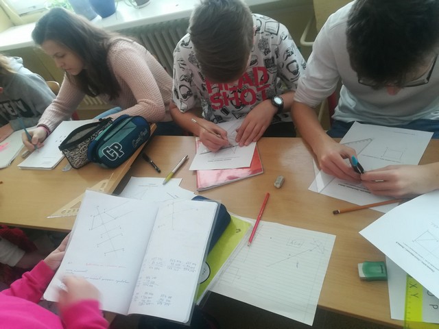 Siedmeho a ôsmeho februára zažili žiaci deviateho ročníka netradičné vyučovanie. Netradičné preto, lebo namiesto pani učiteľky matematiky ich v týchto dňoch učili žiaci piateho ročníka. V stredu žiaci 5.D naučili deviatakov učivo „Osová súmernosť“.Vo štvrtok zasa žiaci 5.C učivo „Stredová súmernosť“.