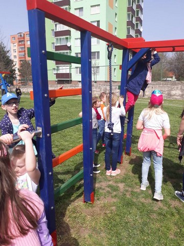 Dnes si naše deti zo školského klubu prvýkrát vyskúšali nové preliezky na školskom dvore. Chlapcom sa zase výborne hral futbal na umelotrávnatom ihrisku. Bolo veselo a všetci sa tešíme, že máme nové ihrisko pre aktívny oddych našich detí.