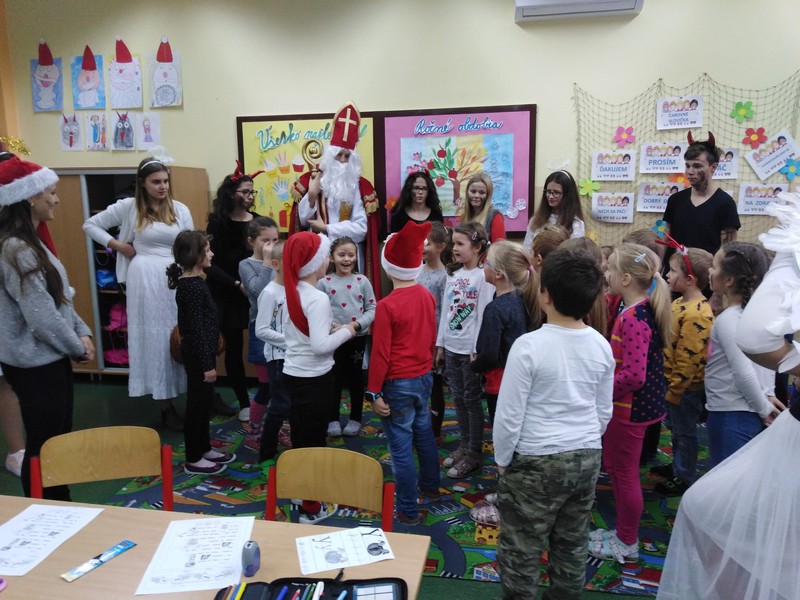 Dnešné mikulášske ráno bolo aj u nás. Už pri vchode vítali deti anjeli a čerti a v triedach všetkých navštívil spolu s nimi aj Mikuláš. Poslušné deti dostali sladkosť a tie menej poslušné sľúbili, že už budú tiež dobré, a tak sa celé dopoludnie nieslo v znamení krásneho sviatku.
