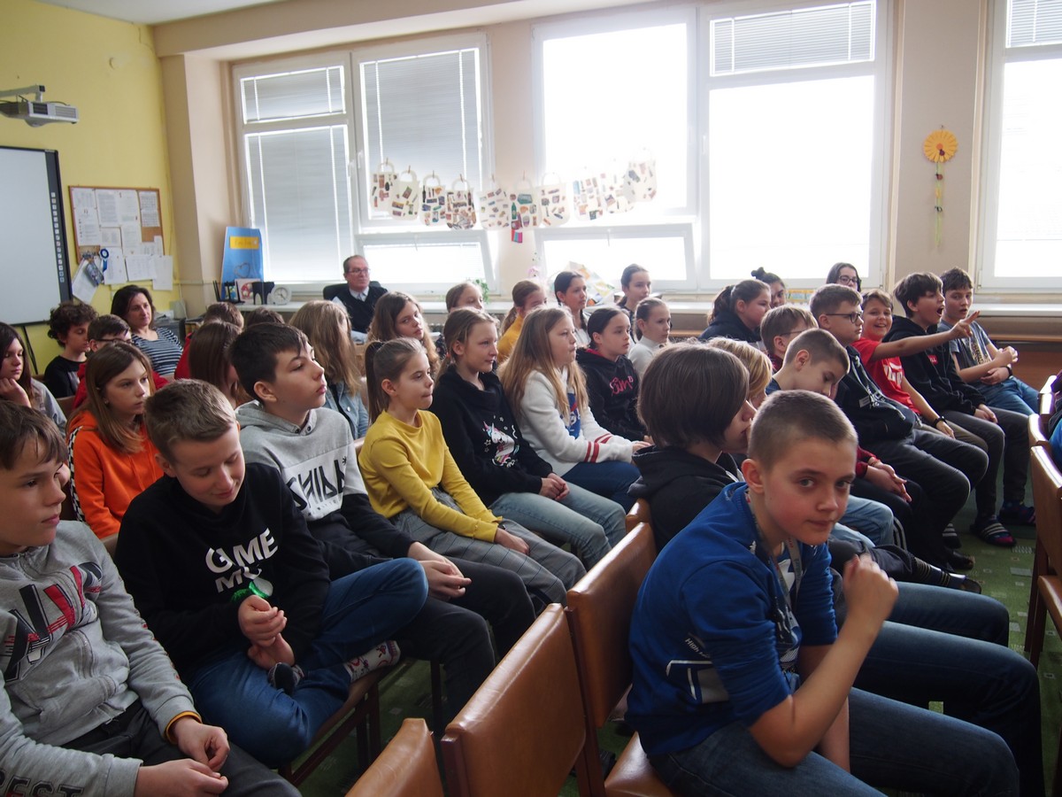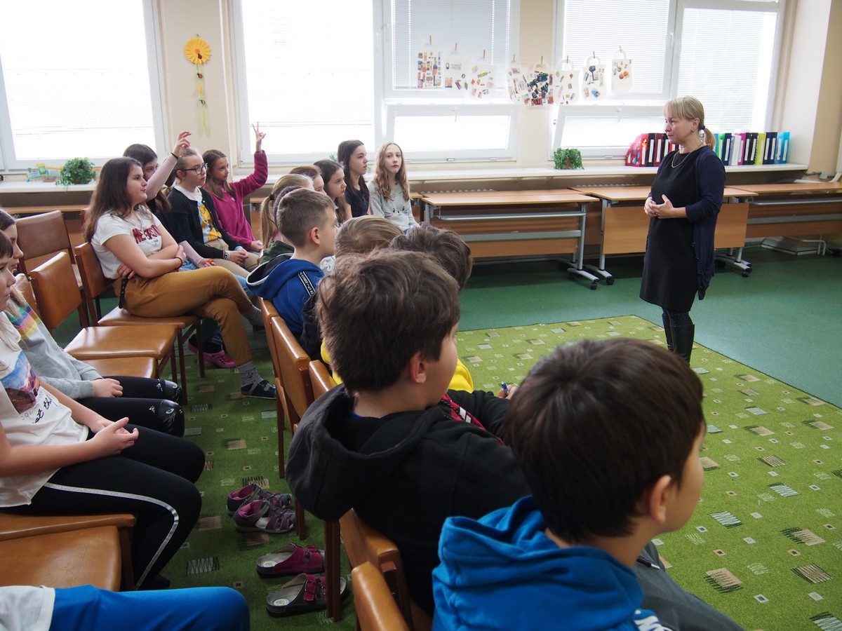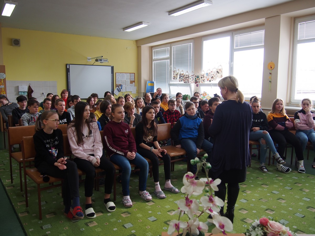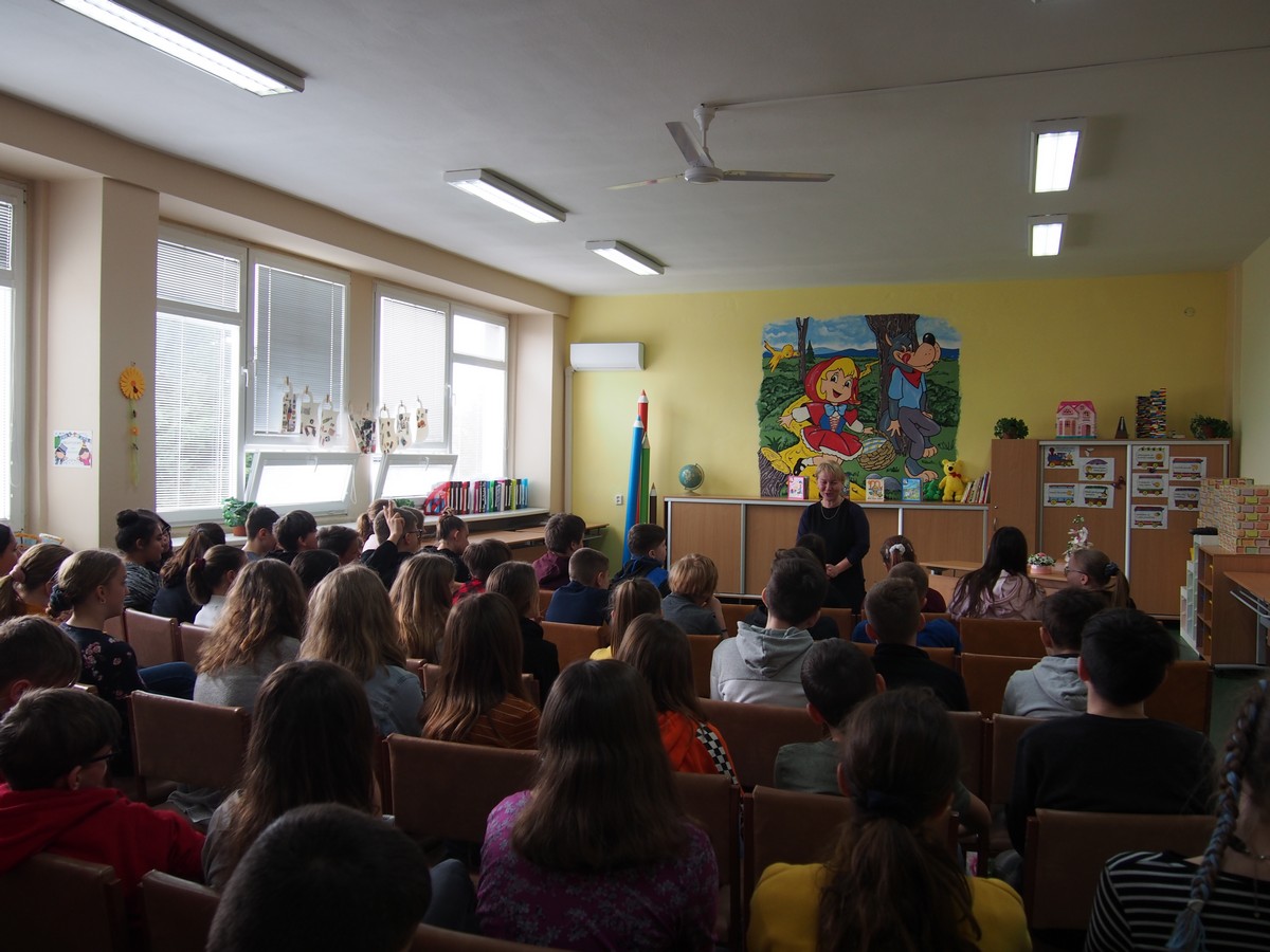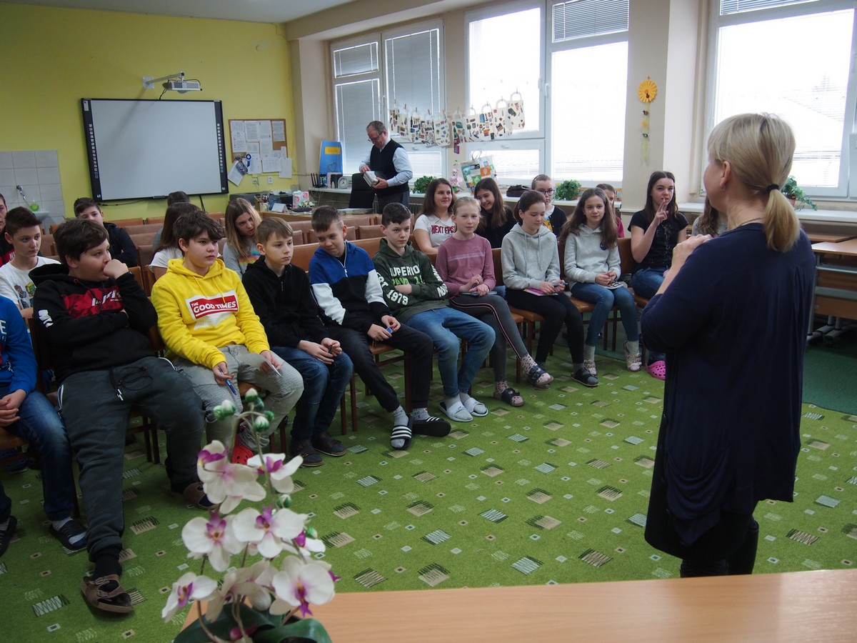 všetci žiaci 6. ročníka. Pani spisovateľka im odpovedala na všetky zvedavé otázky, ktorými ju zahŕňali. Beseda sa niesla v príjemnej atmosfére. Žiaci si z besedy odniesli množstvo zaujímavých informácií.
