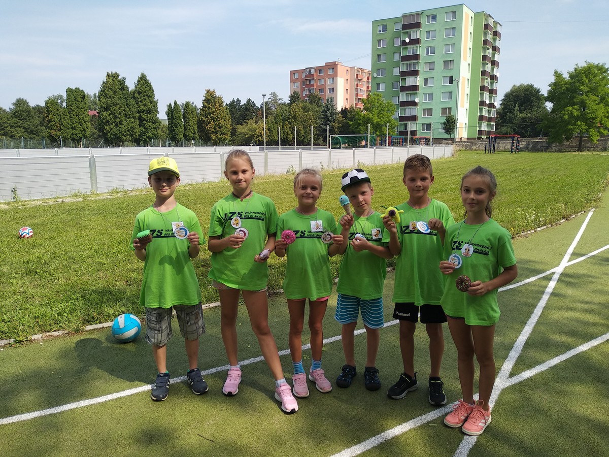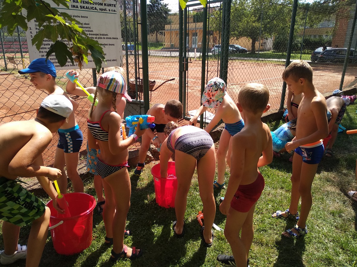 Piatok V zdravom tele zdravý duch, to vie predsa každý! Aj my zdraví chceme byť, išli sme si zacvičiť. Medaile sme získali a všetci sme vyhrali. Po obede karneval, v plavkách sme ho mali. S vodou a aj pištoľkami na „BAYWATCH“ sme sa hrali. Škoda, že už končíme! Bol to super týždeň! Za rok sa zas vidíme, už teraz sa tešíme!!! |