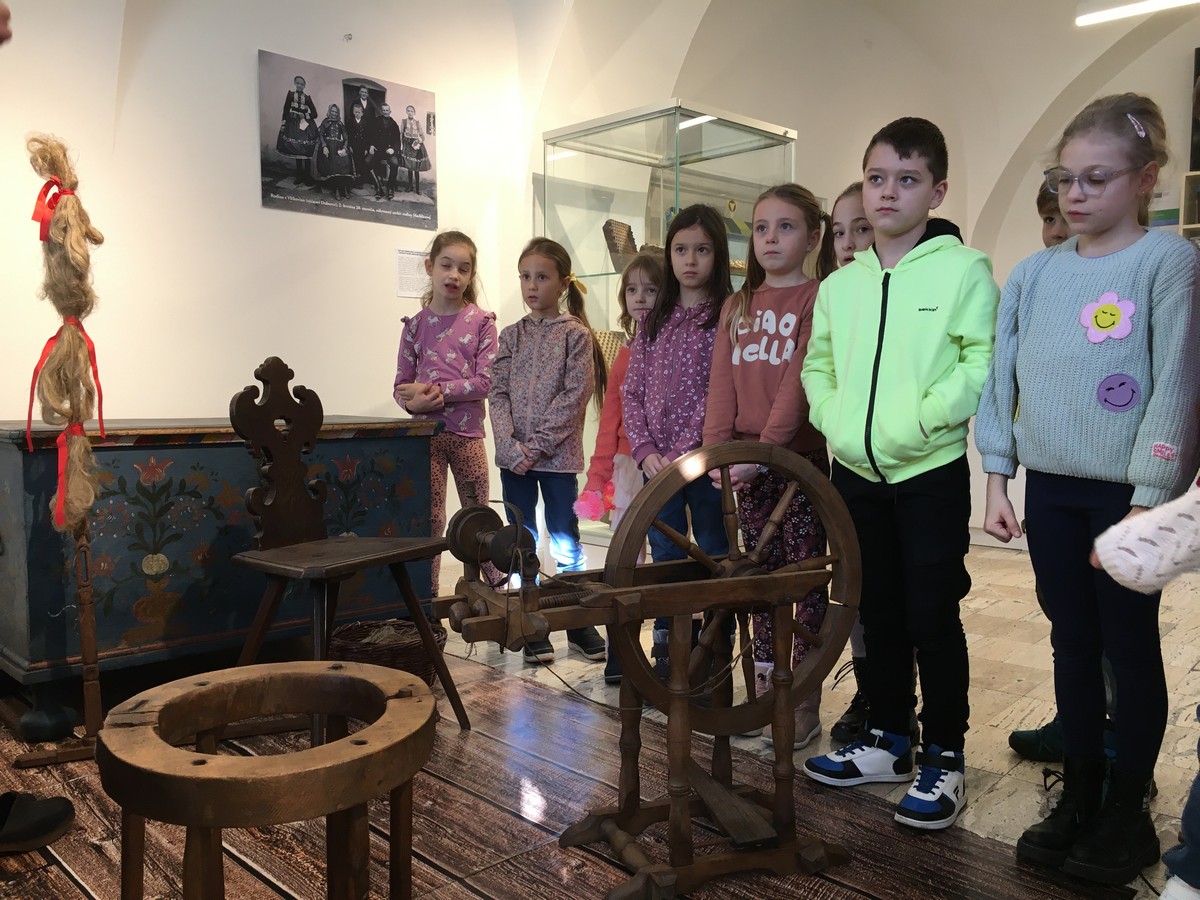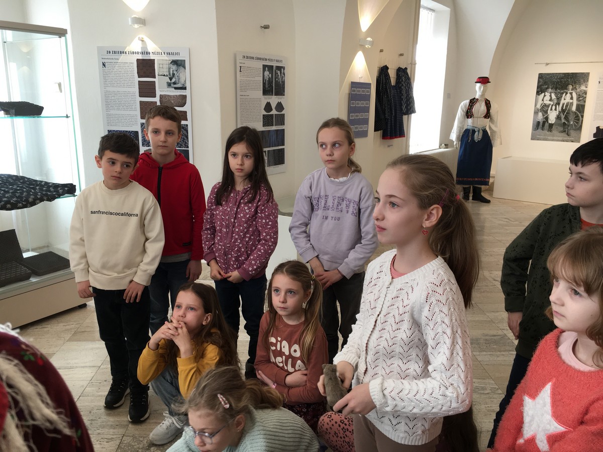 Deti z 2.D spoznali krásu modrotlače počas návštevy skalického záhorského múzea. Boli to pôvabné prikrývky, obrusy, obliečky, zástery a sukne, ktoré nám zanechali naši predkovia ako poklady svedčiace o ich šikovnosti a pracovitosti.