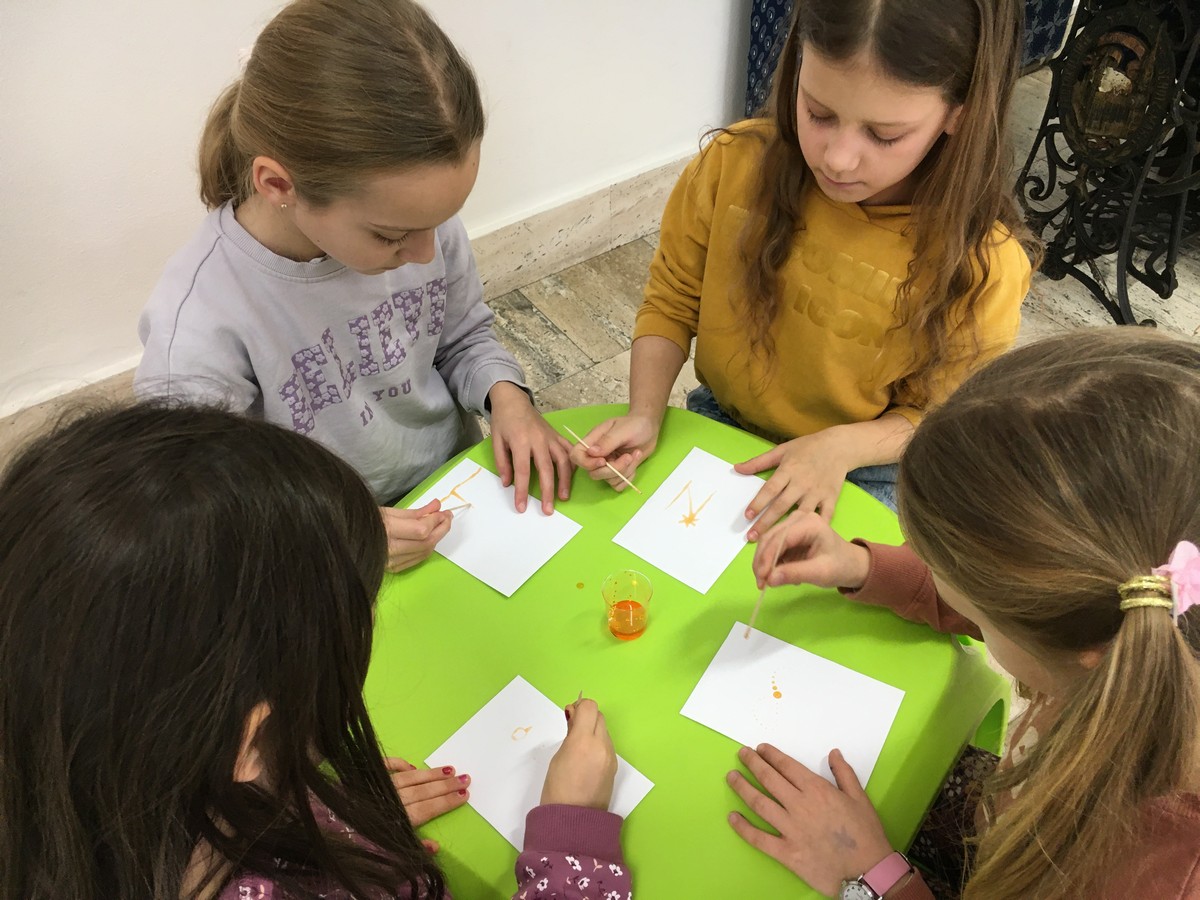 Deti sa tiež oboznámili s technikou modrotlače, vytvorili si obrázky z klovatiny a na záver sa vyzvŕtali v krojoch vyzdobených modrotlačou.