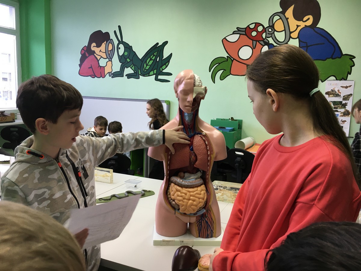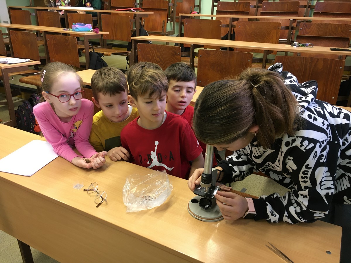 Na jednotlivých stanovištiach sa od nich mladší spolužiaci dozvedeli veľa zaujímavého o ľudskom tele, o rastlinách a živočíchoch, o horninách a mineráloch , o zložení bunky a druháci si dokonca vyskúšali prácu s mikroskopom.