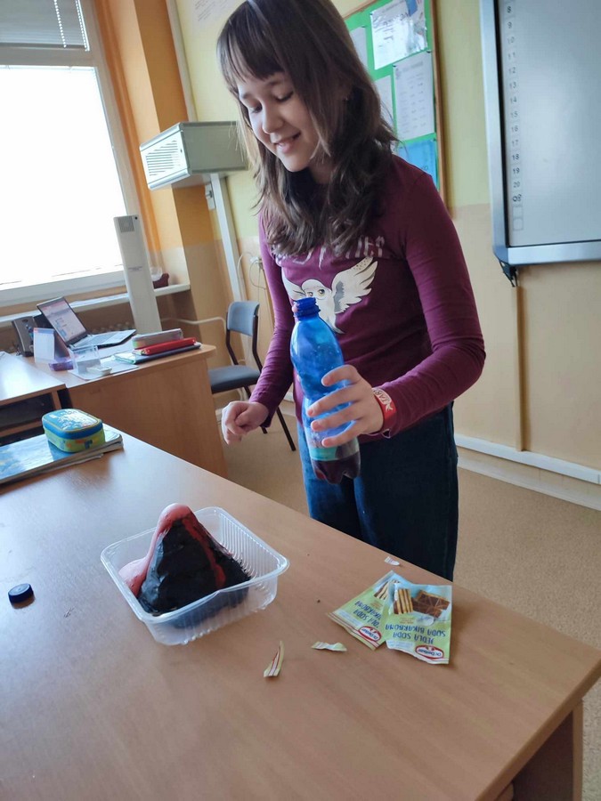Na hodinách Geografie si žiaci vyrobili napodobeniny najznámejších sopiek. Naši piataci spolu s výtvormi urobili pokus a tak pochopili, čo sa deje vo vnútri sopky pred, počas a po erupcii.