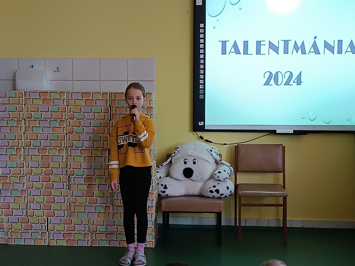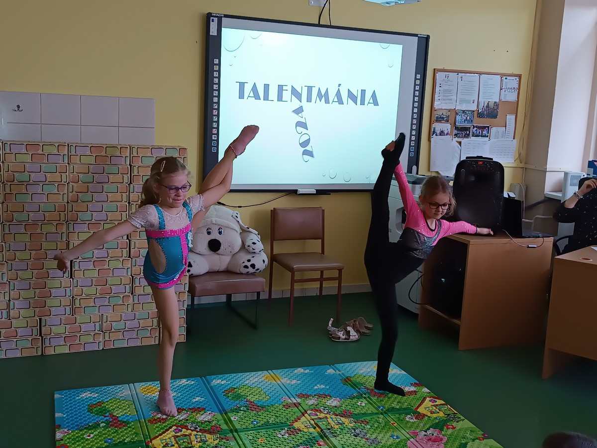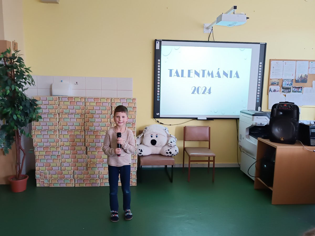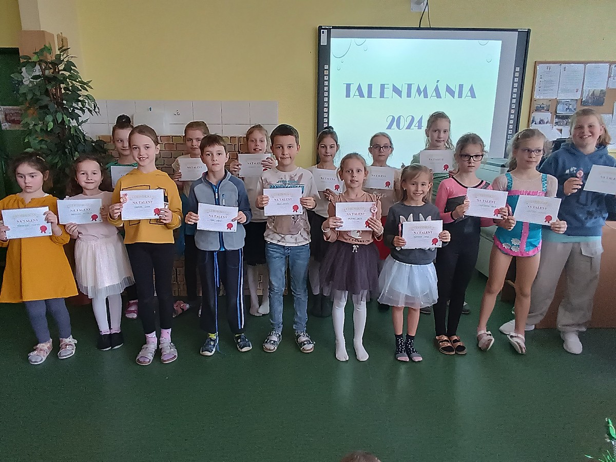Dnes bolo v našom školskom klube veselo. Mali sme našu tradičnú TALENTMÁNIU. 60 detí sa predstavilo ostatným deťom so svojim talentom. Našli sme talenty v speve, tanci, recitácii, kreslení, gymnastike a aj v športových disciplínach. Vybrať jeden talent by bolo veľmi ťažko a preto boli všetci odmenení diplomom pre talenty a sladkou odmenou. Dnešný deň sme si veľmi užili a už sa tešíme na talenty na budúci školský rok.