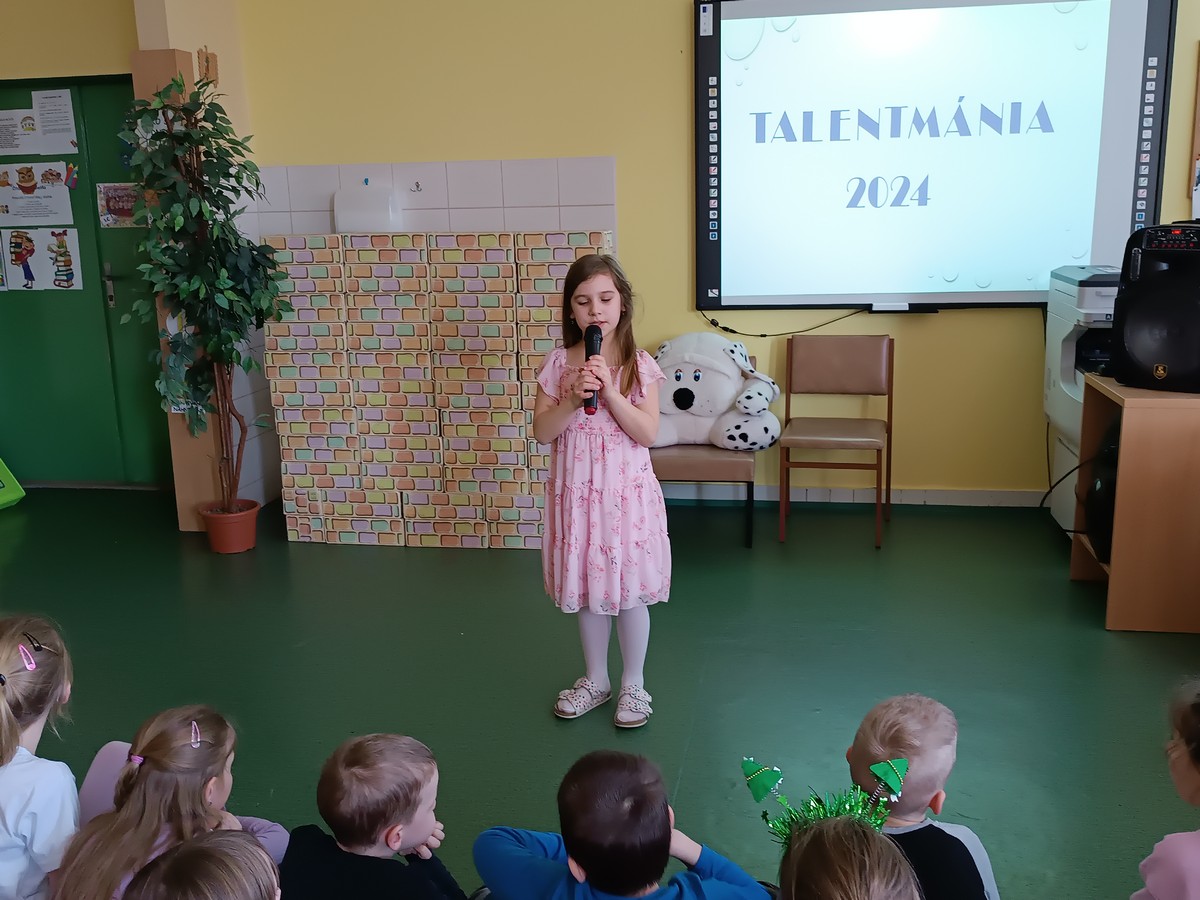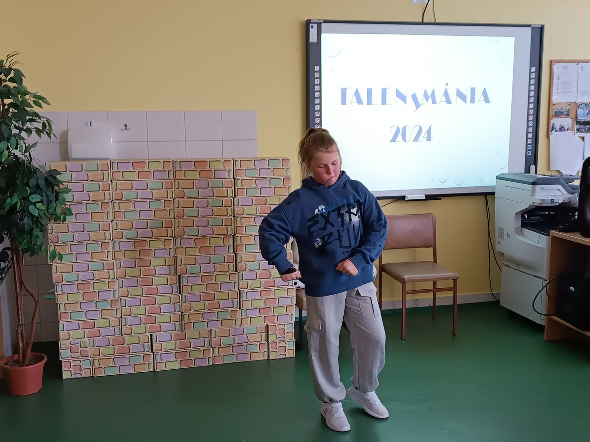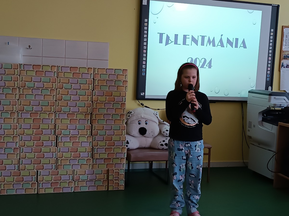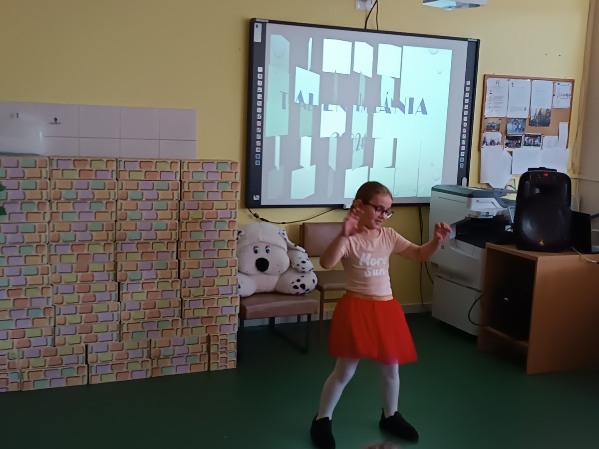 Dnes bolo v našom školskom klube veselo. Mali sme našu tradičnú TALENTMÁNIU. 60 detí sa predstavilo ostatným deťom so svojim talentom. Našli sme talenty v speve, tanci, recitácii, kreslení, gymnastike a aj v športových disciplínach. Vybrať jeden talent by bolo veľmi ťažko a preto boli všetci odmenení diplomom pre talenty a sladkou odmenou. Dnešný deň sme si veľmi užili a už sa tešíme na talenty na budúci školský rok.