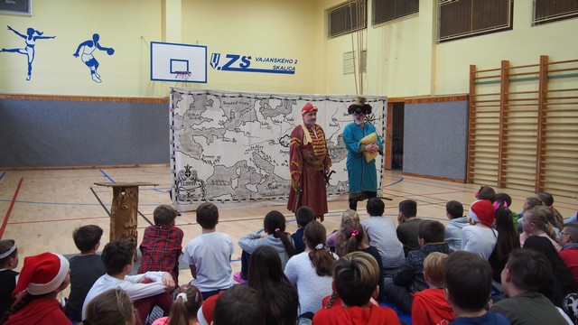 Šermiarsko - divadelná kumpánia VIA HISTORICA zo Zvolena previedla žiakov našej školy významnými obdobiami slovenských dejín až do čias Ľudovíta Štúra. Výkony hercov, dobové kostýmy i scéna nám umožnili, aby sme sa preniesli v čase. Niektorí z nás si zopakovali a upevnili svoje vedomosti, iní sa zoznámili s novými informáciami a faktami.