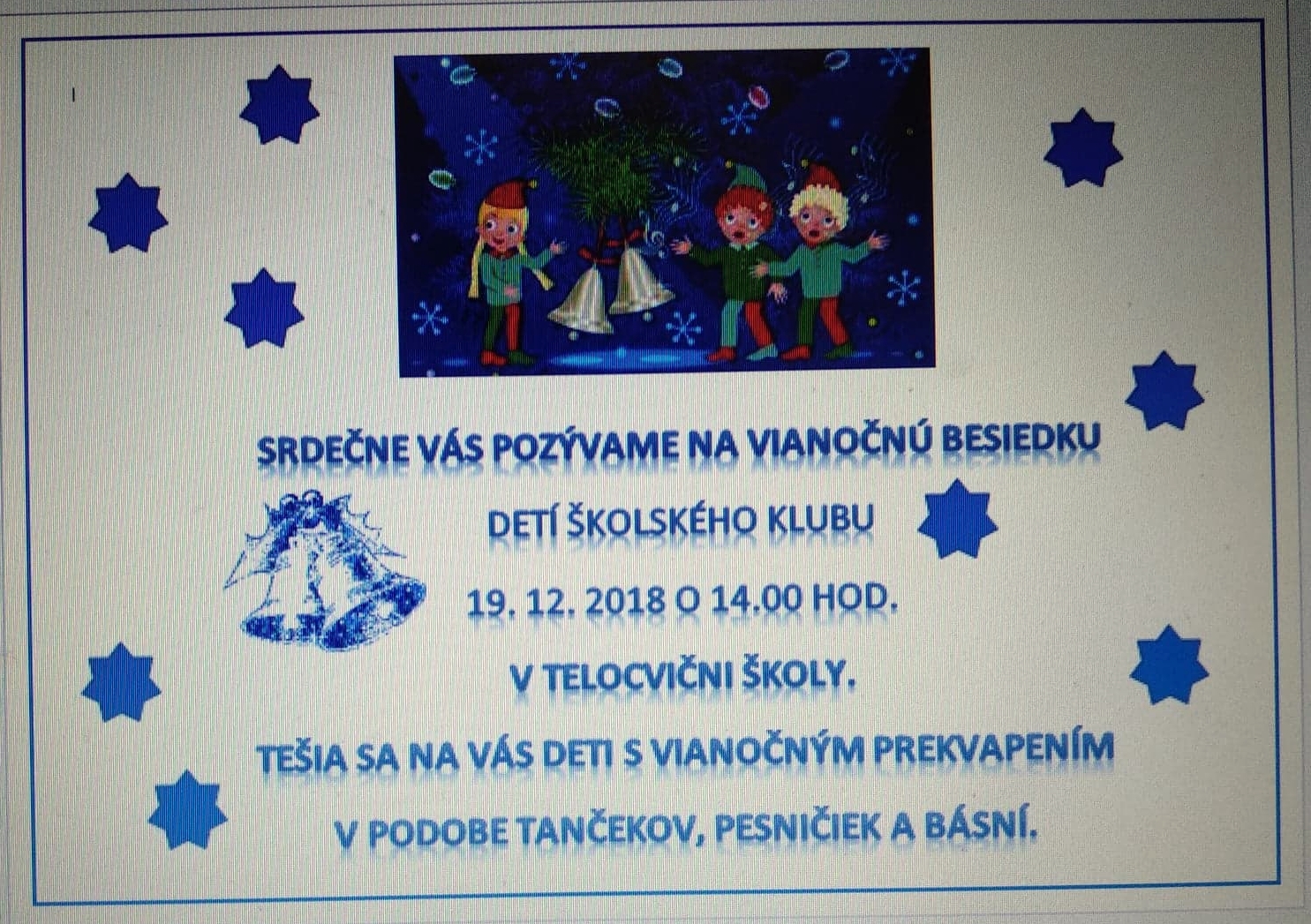 19. 12. 2018 o 14:00 hod. v telocvični školy.