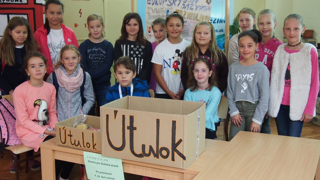Pri príležitosti 4. októbra, “Svetový deň zvierat,, - Žiacka školská rada vyhlásila zbierku pomoci pre útulok v Skalici. Zbierka sa uskutoční v termíne 2.10 - 5.10. 2018, každé ráno vo vestibule školy. Zvieratká potrebujú našu pomoc, tak prosím pomôžme!