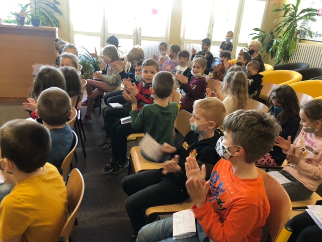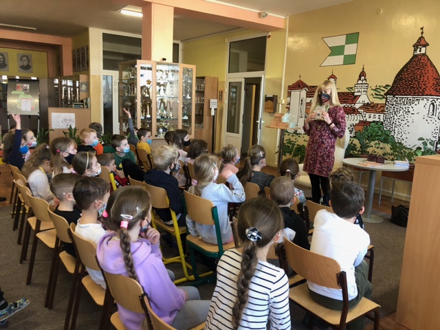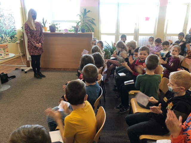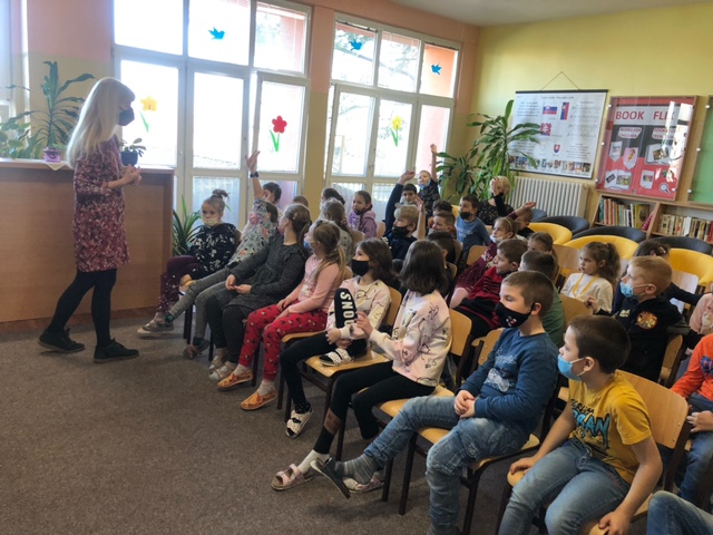 Marec – mesiac knihy si v stredu, 23.3.2022, pripomenuli aj naši prváci formou stretnutia so spisovateľkou Kristínou Baluchovou.
