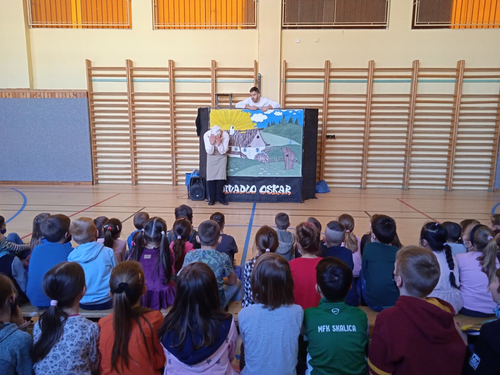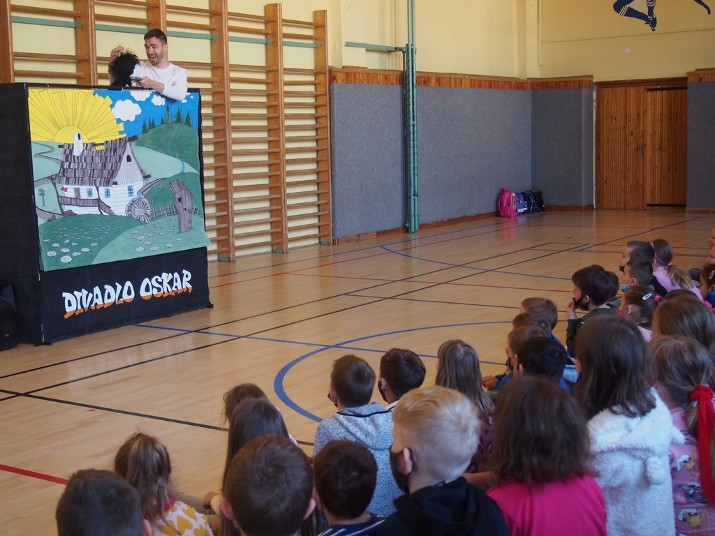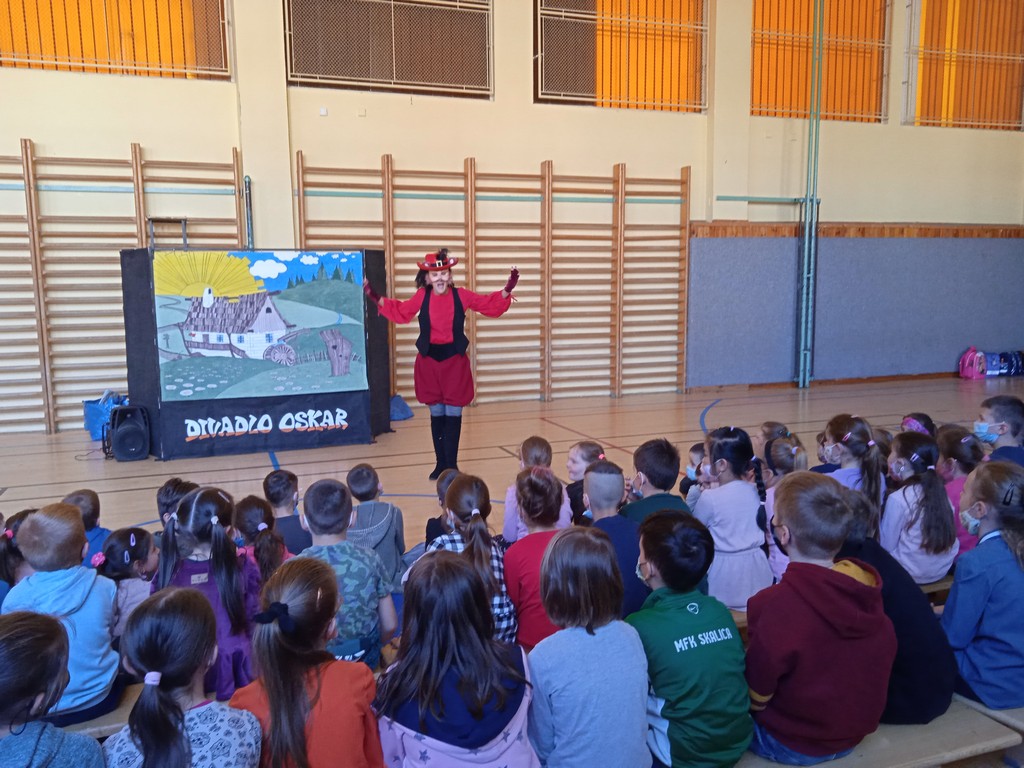 V pondelok 11. apríla k nám zavítalo divadlo OSKAR. Našim druhákom a prvákom zahrali herci činohernú rozprávku Kocúr v čižmách. Deťom priniesli dobrú náladu, radosť a smiech. Profesionálne výkony hercov, pekné kostýmy, zaujímavá scéna priniesli deťom príjemný zážitok.