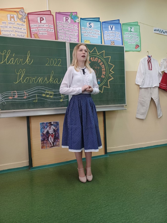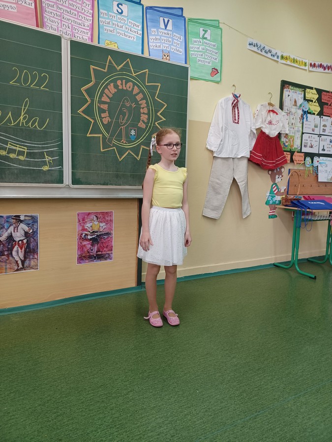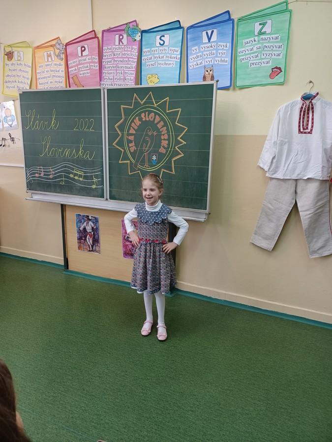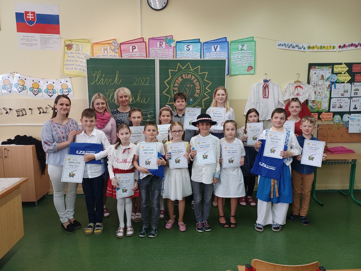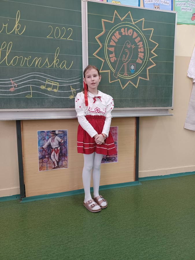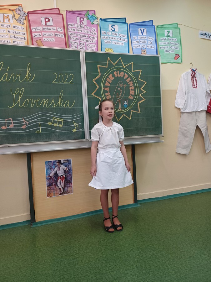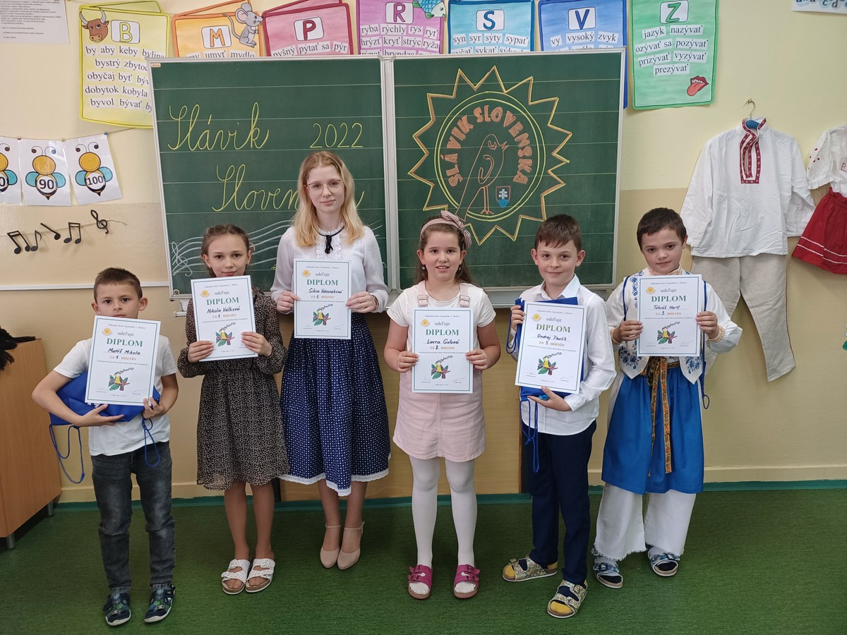 Dnes sa v našej škole niesol slávičí spev. Po dvojročnej prestávke sa konalo školské kolo speváckej súťaže Slávik Slovenska. Naši speváci si pripravili pekné ľudové piesne a niektorí z nich sa predviedli aj v krásnych krojoch. V prvej kategórii sa umiestnili žiaci nasledovne: 1. miesto Matúš Mikula (2.C), 2. miesto – Eliška Sládková (1.B), 3. miesto Tobiáš Hertl (3.C), 2.kategória: 1. miesto Nikola Válková (4.D), 2. miesto Laura Gulová (4.D), 3. miesto Ondrej Paulík (4.C), 3. kategória: 1. miesto: Silvia Vdoviaková (9.C).