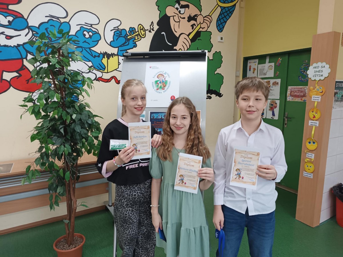 Vo februári sa uskutočnil 31. ročník Šalianskeho Maťka – školské kolo recitácia povestí v kategóriách: kategória (2. – 3. ročník) 1. miesto...