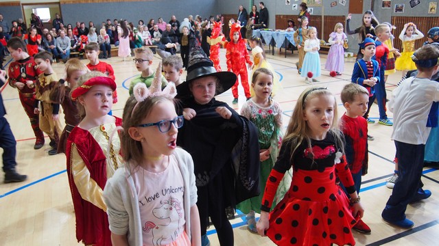 Telocvičňa sa premenila na saloon, miestnosť pre šerifa, banku, bar a nechýbala ani stajňa s koníkom. Deti v maskách princezien, čarodejov, čertov, víl, rôznych chrobáčikov prišli spolu s rodičmi, aby strávili spoločné popoludnie. Telocvičňa hýrila farbami a zo všetkých kútov bolo počuť len radosť a detský smiech. Deti tancovali, spievali a pri tom sa mohli občerstviť v našom bufete, do ktorého prispeli mamičky a babičky sladkými dobrotami, za čo im patrí veľká vďaka. Na žiadnom plese nesmie chýbať tombola a u nás sme mali, vďaka rodičom našich detí, ceny pre všetky masky. Každé dieťa si odnieslo z karnevalu peknú spomienku v podobe ceny a nás dospelých hrial pri srdci dobrý pocit, že sme deťom pripravili zase jedno krásne neopakovateľné popoludnie.