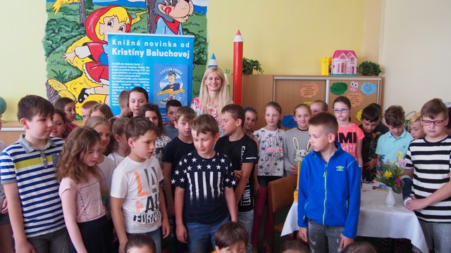Žiaci štvrtého ročníka sa zúčastnili autorského čítania a besedy so spisovateľkou Kristínou Baluchovou v rámci prezentácie jej najnovšej knihy "Kapitán Padák & Pašerácka spojka". Bývalá letuška, manželka pilota, sa v tvorbe zameriava na tému lietania a všetkého, čo k tomu patrí. Pani spisovateľka trpezlivo odpovedala na všetky zvedavé otázky detí a pochválila ich za aktivitu a komunikatívnosť.
