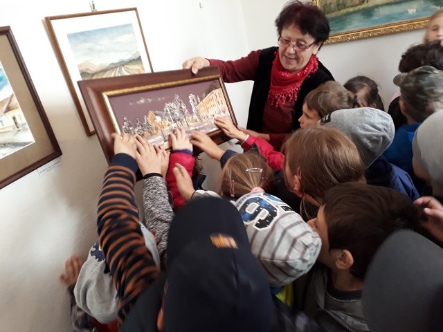 Pani Vlasta nás výstavou sprevádzala a priblížila nám zaujímavé príbehy ukryté vo svojich maľbách a kresbách. Zároveň nám porozprávala o technikách, ktoré používa pri tvorbe a názorne predviedla, že nielen pomocou štetca dokáže vytvoriť nádherné diela. Po zaujímavej prezentácii veľmi ochotne odpovedala na všetky zvedavé otázky detí.